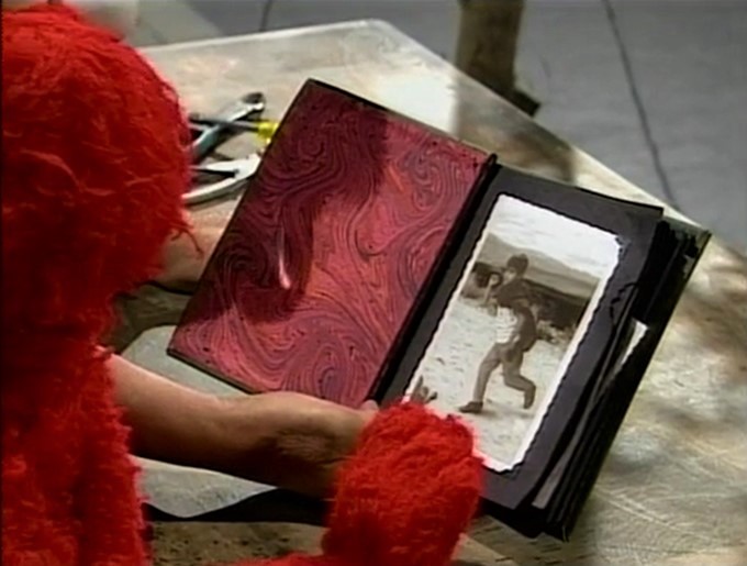 SCENE 1 | Over at the Fix-It Shop, Luis shows Elmo his photo album. They come across a picture of little Luis wearing a blanket as a cape. He recalls that was for his imaginary superhero "Running Man," who simply just loved running. Inspired, Elmo decides to become "Running Elmo!" |