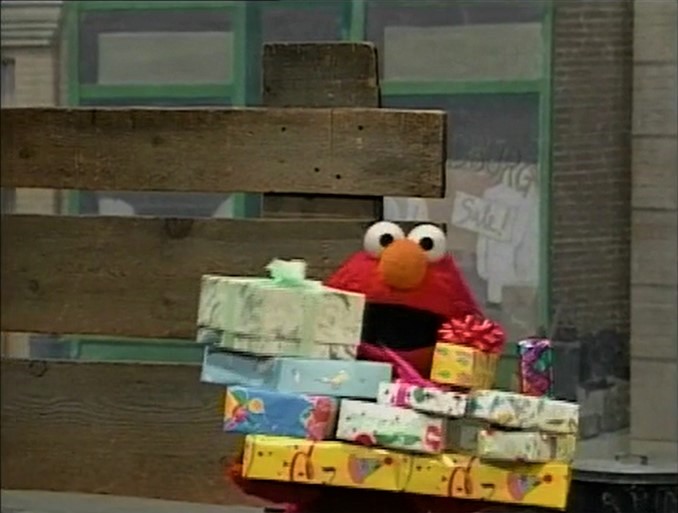 COMING SOON | Coming Soon on Sesame Street: Elmo carries a stack of presents to deliver to Gabi on her birthday. |
