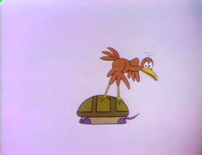 Cartoon | The rabbit and the turtle race to the top of a building. The rabbit goes up forty steps, but the turtle takes the elevator. (First: Episode 2258) |