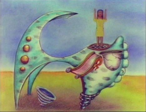 Animation | A girl plays in, on and under a sculpture. (First: Episode 2898) |
