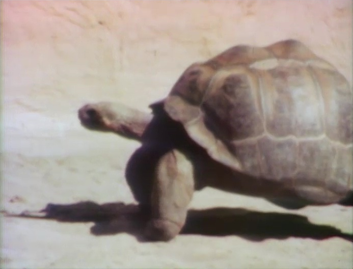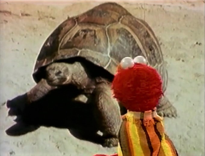 Film | A turtle walks slowly. Music: "Funeral March of a Marionette" by Charles Gounod (First: Episode 0281) Now wearing a dish towel as a cape, Elmo appears over the film, unsuccessfully trying to get the turtle to run with him. |