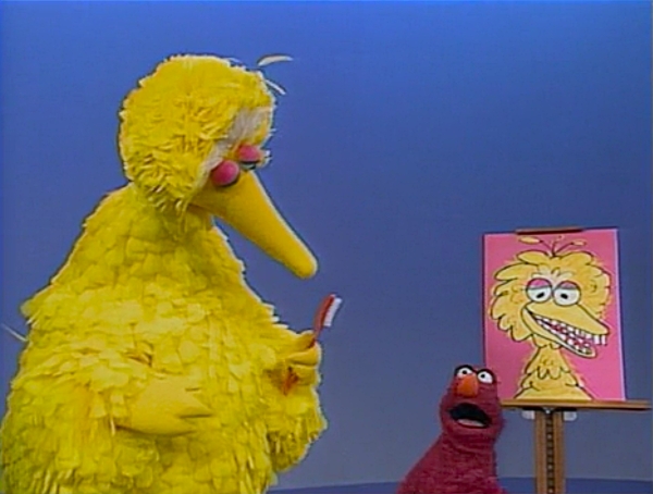 Muppets | Telly wants to show how to brush one's teeth, using Big Bird as an example. Big Bird states he doesn't have teeth...but Telly's drawing of him does. |