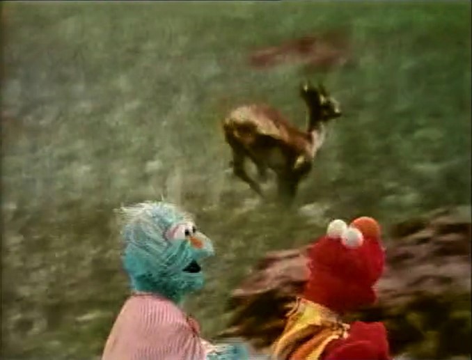 Film | A gazelle runs fast across a plain. Music: Joe Raposo (First: Episode 0478) Running Elmo and Rosita (donning her own cape) run through the film, trying to keep up with the gazelle but fall behind. |