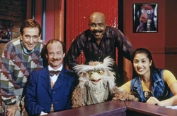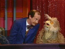 SCENE 6 | Michael Tweeter now does a perfect vocal impression of Big Bird singing "ABC-DEF-GHI," using his hand to mimic Big Bird's beak. To the delight of the crowd and the amazement of Hoots, he then does a Hoots impression to announce the sponsors. |