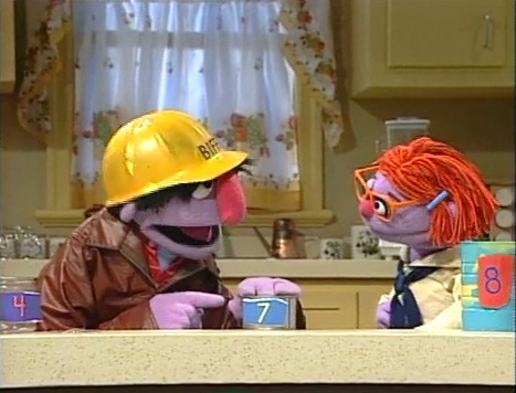 Muppets | Biff comes home to Roxie Marie, who just found her number collection in the attic. The number on each jar is the amount of each single object in the jar. (First: Episode 3190) |