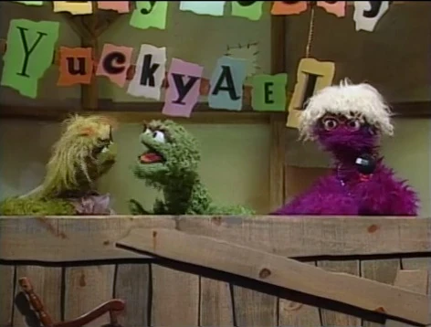 Back in the present, the Grouch audience is in shock at this story. Oscar and Grundgetta argue over who suffered more from it, while Sally tells the viewers to stay tuned. |