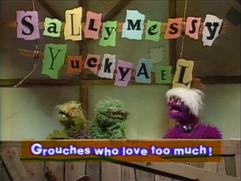 COLD OPEN | An announcer (Martin P. Robinson) declares, "And here she is, the one you've all been waiting for... Sally Messy Yuckyael!" Oscar and Grundgetta are guests on Sally's trashy talk show, where today's topic is displayed onscreen: "Grouches who love too much!" |