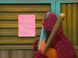SCENE 3 | Telly and Carlo ponder that "Bb" could stand for baseball, boogie board, or basketball, while the other "Bb" could be Big Bird or Baby Bear. Telly heads for the park, but isn't sure which item to bring. |