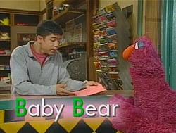 SCENE 5 | Telly is surprised to find that the one who wrote the notes is Baby Bear, who understands the confusion since he and Big Bird both have two names that start with B. He then gets an idea to start a "BB" Club for those with similar names and they can do B-word activities. Telly notes that this leaves him out since his initials are T and M, so Big Bird and Baby Bear discuss other options. |