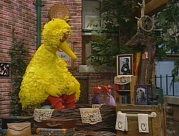 SCENE 1 | Big Bird greets the viewer on his way to Hooper's Store for a birdseed milkshake. He compliments Nick's coloring book version of the letter C on his way there. |
