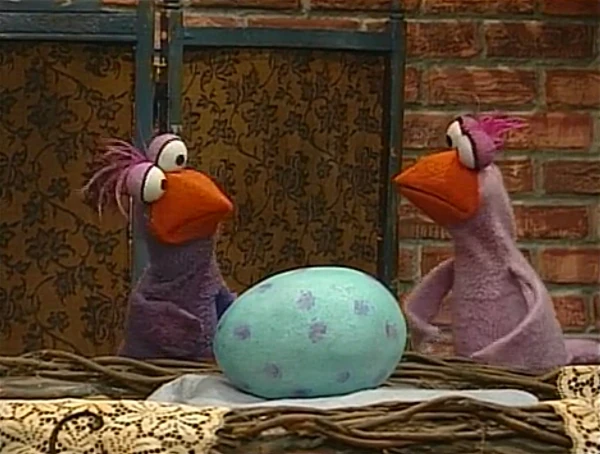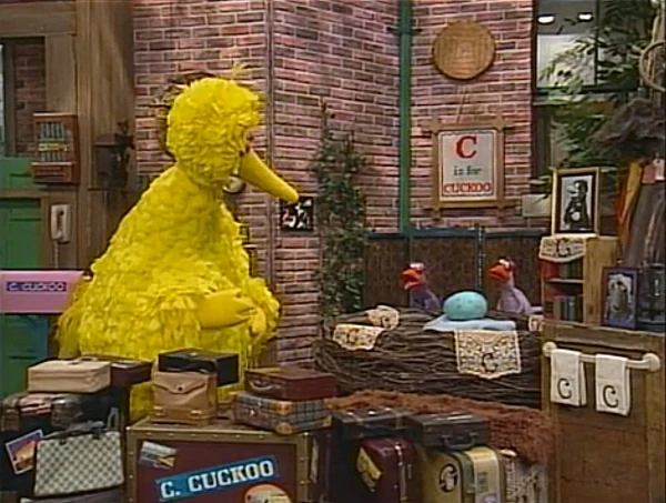 SCENE 5 | The Cuckoos have returned, but can't agree on what to name the baby. They settle on Big Bird's suggestion - Cathy - when they realize the gender. They teach their new baby the Cuckoo National Anthem, "C is for Cuckoo," and explain how special it is to be a cuckoo bird. Big Bird even finds himself singing along with the family. When the song is done, Big Bird expects them to leave but Claude decides they should stay longer, not wanting to take the child away from the only home she knows. They recommend Big Bird find an empty nest of his own to move into; that's the cuckoo way! |