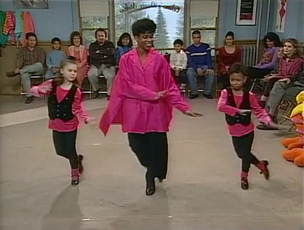 SCENE 2 | Celina introduces the next dance, a tap dance routine done with special guest Karen Calloway. Karen demonstrates the first tap steps she learned as a kid. She then incorporates it into her routine with two girls, and the three perform to a jazzy version of the Sesame Street Theme. Following the performance, Big Bird almost throws a tantrum about Spencer not being present and his dance needing four birds, but Celina advises him to relax. |