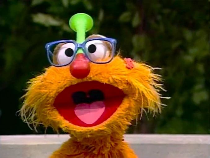 SCENE 4 | Zoe demonstrates same and different: first she displays a nameless blue monster (Kevin Clash) who doesn't look like her, then she shows an exact replica of herself. The two Zoes only have one difference: their voices. |