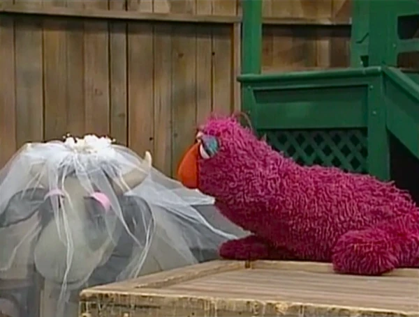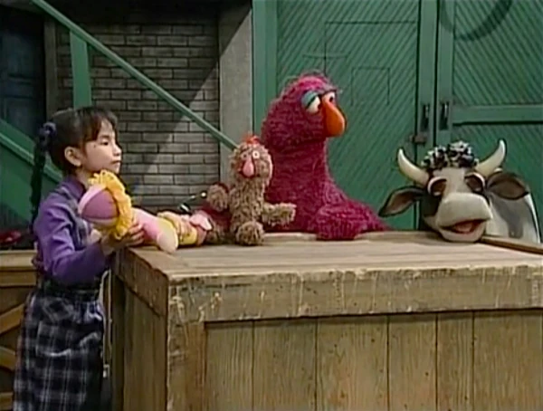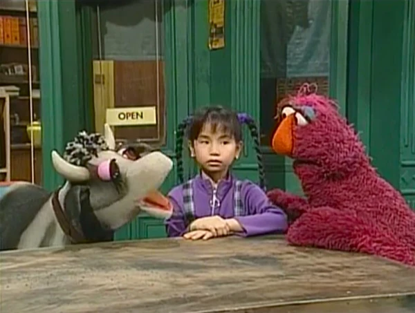 - This episode was originally written for Season 27, with the intention of having Louise Gold perform Kathleen. Big Bird was also present in these earlier scripts instead of Telly. An additional scene was also written, and later cut, where Kathleen experiences "food love" by sampling various foods at Hooper's Store until she eats something she truly loves - hay.[1] Instead, there's a moment in scene 2 when Lexine brings up learning about "food love," but Kathleen says that she just had breakfast.
