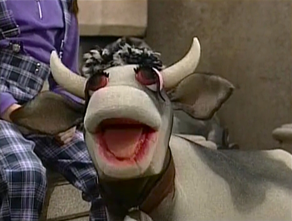 SCENE 1 | Telly introduces the viewer to his friend Kathleen the Cow, who is sad that she doesn't understand what "love" is. She explains that she's felt all the other emotions like happiness and sadness, but isn't sure what love is like. Telly and Lexine try to explain it, starting with how to love one's doll. Kathleen doesn't have one, so they head to Finders Keepers to find one. |