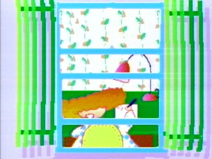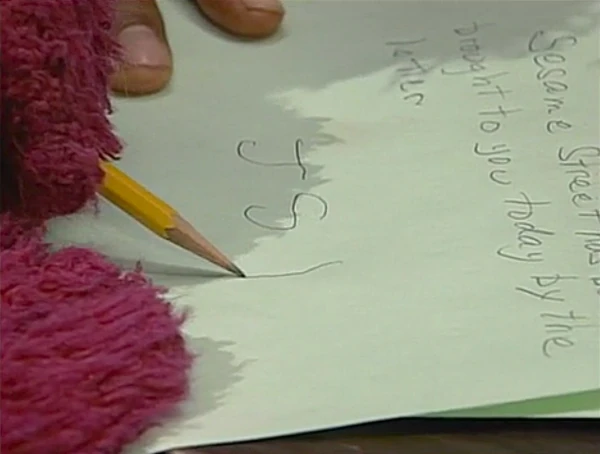 SCENE 3 | Telly returns with a radio, Freddy, and a bow tie, since he thinks a monster should dress up for any special occasion. Bob turns on the music (a simple fanfare), and Gordon reads the letter. It turns out the letter is from Telly's cousin Amanda, who wants him to write her back. Thinking they're done, Gordon and Bob start to leave when Telly interrupts and worries that he can't write. The two offer to help him write his letter... but after Telly goes to get the supplies they need. |