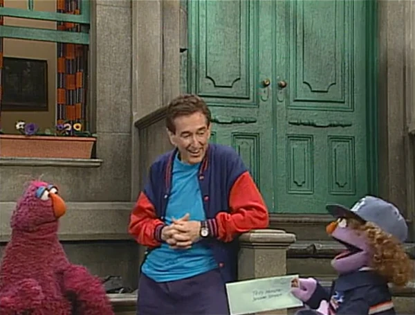SCENE 1 | Bob runs to Gordon's apartment window and asks if he's ready to go on their afternoon jog in the park, but he's not quite ready yet. Telly barges in to help announce the letters and number of the day when a postal worker (Julianne Buescher) arrives to deliver a letter for him. An excited Telly mentions to Bob that it's the first letter he's gotten in his life, and he's so excited that he doesn't know what to do. Bob insists he open the envelope, but Telly is too worked up to do it himself so he lets Bob open it instead. |