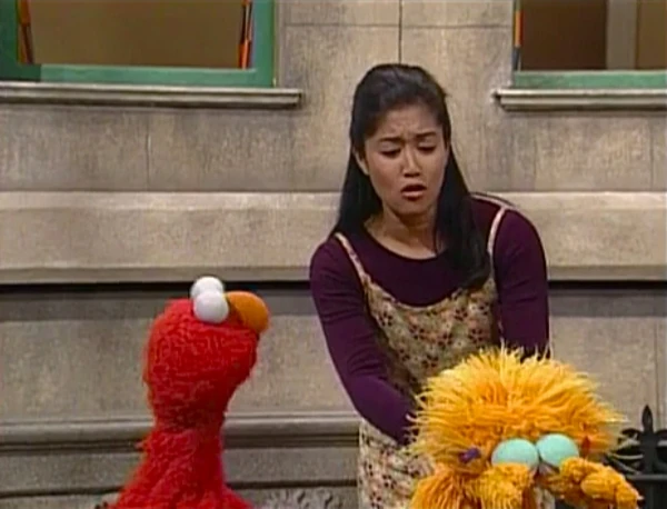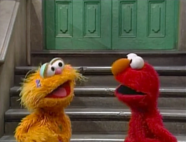SCENE 6 | The two monsters return to the stoop where Elmo realizes there's one thing left to do, and that is to lose. Zoe suddenly breaks her mute state and is happy she won, and admits to Elmo how good he is at the game. The two feel proud when Elmo decides for them to play the game together, which Celina falls bait to when she checks on them. She announces the sponsors then invites them for ice cream, causing them both to lose. |