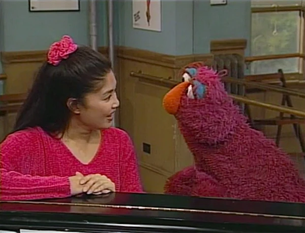 SCENE 1 | Telly arrives late to a sing-along being held at Celina's dance studio and joins Big Bird, Luis, and the kids, with Dave on piano. They all then sing "Let's Sing a Song That Everybody Knows" led by Luis and Celina, with Big Bird, Nicole, and Telly performing solos. Afterwards Celina tells them they'll be singing a song that nobody knows, which puts Telly into panic mode. |