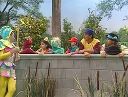SCENE 3 | In the next chapter of the story, the hat catcher leaves the stick behind as he goes off juggling his wares. Soon, a fisherman (Telly) happens by in need of a fishing pole and thinks the stick will work fine. He takes it to the pond and catches a large fish (Bob), who compliments Telly on how great his fishing pole is. Elsewhere, the hat catcher returns and sees the stick is missing, and is soon joined by the ballplayers and princesses in their sob fest. What will happen with the sad and happy characters? Stay tuned for the final part! |