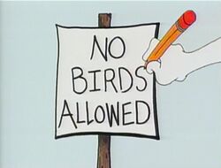 Cartoon | Some animals want a boy to share his birthday cake with them, but he keeps changing his "No ______ allowed" sign, until they all offer him a glass of milk. Artist: Gene Barretta (First: Episode 3558) |