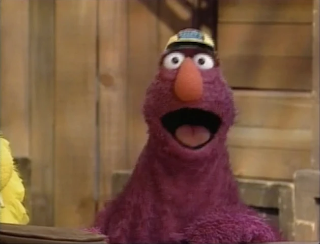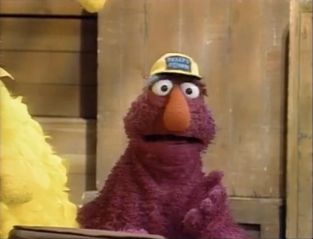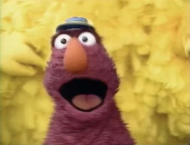 Wayne shows up with yet another telegram from the Four Tuba Guys, and yet another speech on the importance of reading - but Telly knows his modus operandi by now and just begs to hear the telegram. It says the band's bus broke down, and now they're walking to the show. Wayne laments, "Well, the telegram is read and it looks like my work here is done... I promised myself I wouldn't cry... I love you all!" and darts off. Telly and Big Bird segue into the next video. |