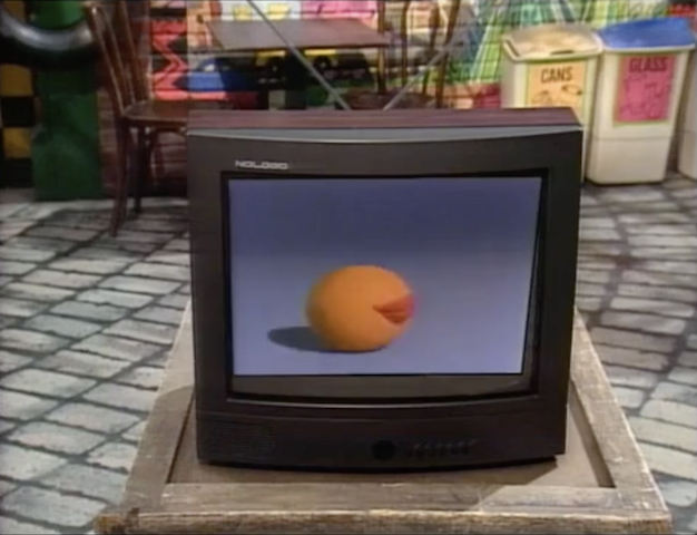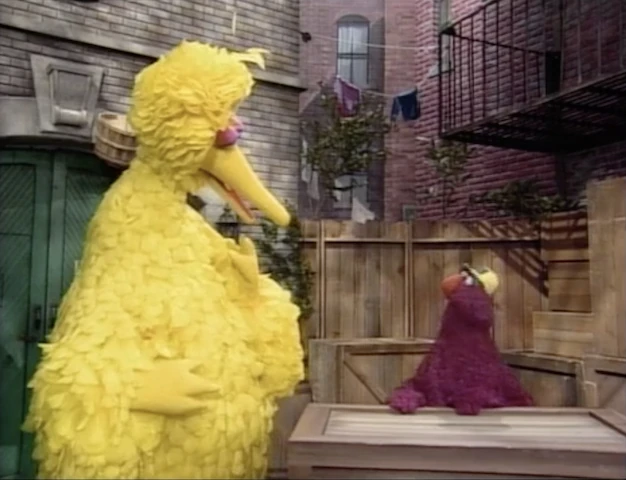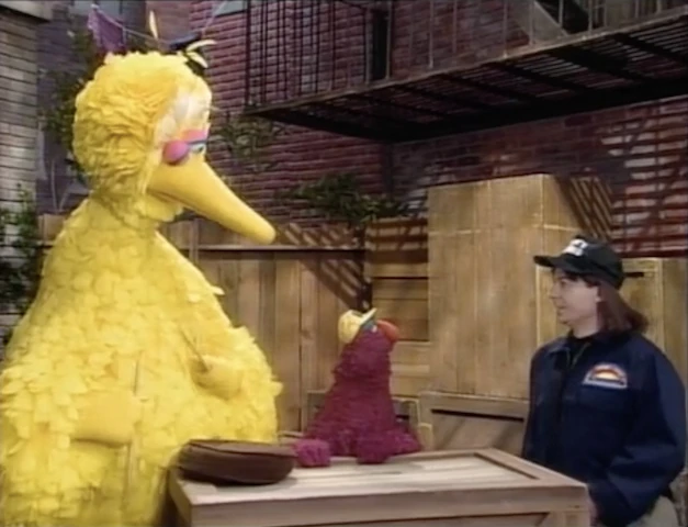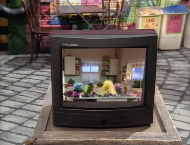 The camera quickly zooms in on Telly's face as he screams "OH NO!!" Wayne leaves, and Big Bird suggests they show some videos while they wait. On the TV, they view a Cecille video... |