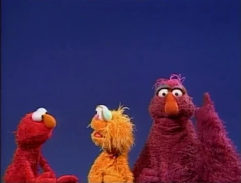 Muppets | Elmo, Telly and Zoe want to show "between" by having Elmo appear between the other two. However, the never get in the right order and are forced to run around and switch place. (First: Episode 3384) |