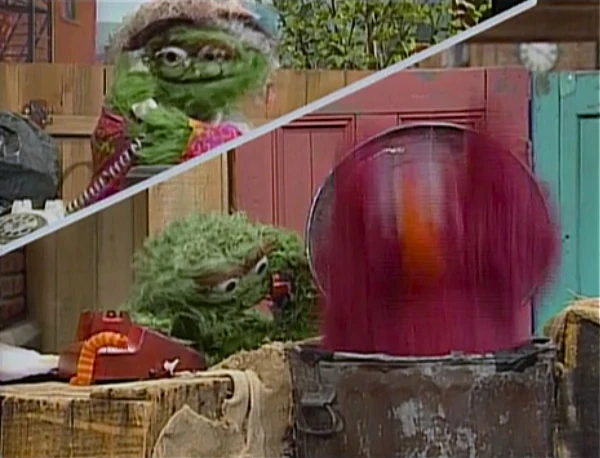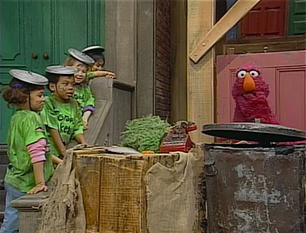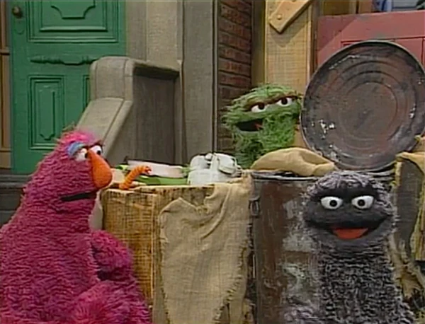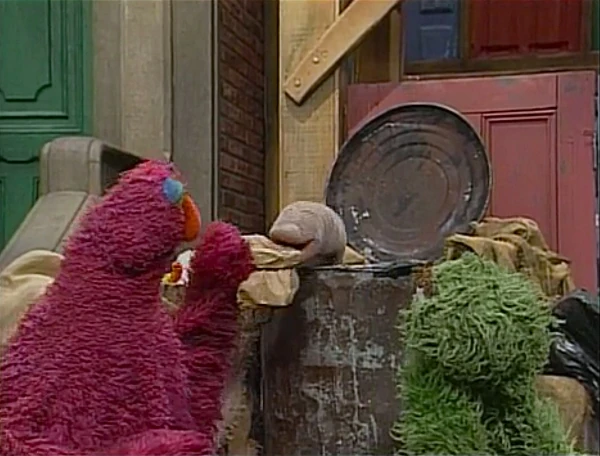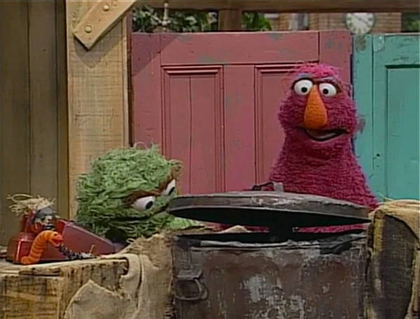 SCENE 1 | Telly stops by Oscar's trash can, where Oscar is in need of a pet sitter while he visits his mother. He phones "Jaws-R-Us," a Grouch pet-sitting service, but the representative (Joey Mazzarino) is not only too rude (even for a Grouch), but "doesn't do worms" (referring to Slimey). Telly offers his services, but before Oscar can allow this, Telly must pass the "Watching the Grouch's Pets While the Grouch Visits His Mother Test." |