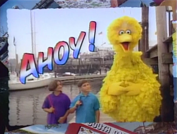 Muppets | Big Bird's Video Postcards Big Bird goes fishing in Bridgeport, Connecticut, with his friends Colin and Marlee. It takes awhile for him to catch one, but he finally does. (First: Episode 3445) |
