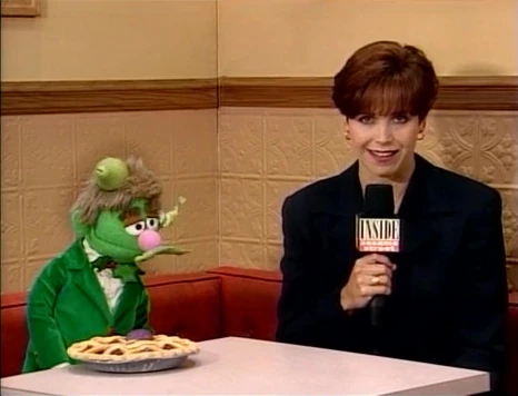 Muppets / Celebrity | Inside Sesame Street Monty introduces the story of Little Jack Horner, who has recently given up eating with his thumb. At Hooper's, Katie Couric interviews Horner, who has tried using parts of his face to eat his pie, with less-than-satisfactory results: he stuck in his hair and pulled out a pear, then stuck in his snout and pulled out a trout, etc. He vows to make a comeback, however, then sticks his thumb in the pie and accidentally flings a plum into Katie's eye. (First: Episode 3329) |