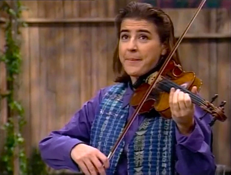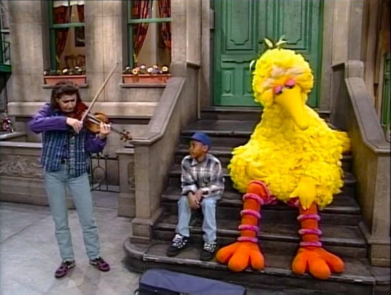 Celebrity | Nadja Salerno-Sonnenberg spots Big Bird and Miles looking sad, and interprets how they feel by playing the violin. When she finishes playing, she reveals that she has the baseball they lost. (First: Episode 3580) |