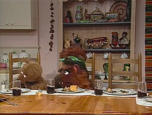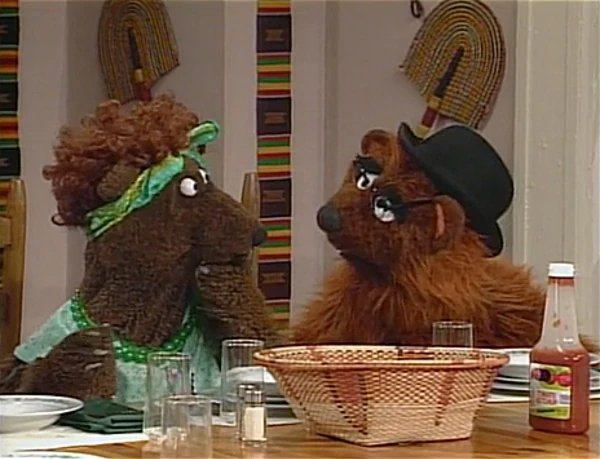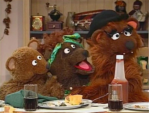 SCENE 3 | The Bear Family is now in Gordon and Susan's apartment and waits for dinner to be served. Baby Bear admires the decor and compliments the Miles Davis jazz music they have playing. He is also surprised that Miles can set the table all on his own, which Miles claims he learned to do as he got older. Gordon reminisces of when Miles was younger, cueing a song performed by everyone about what the kids were unable to do when they were young (βI Wish I Knew How to Do That Tooβ). Miles gives Baby Bear a plate to set down on his own, and Baby Bear puts it on the table with pride. Papa Bear catches a whiff of the almost-done dinner and wonders what kind of porridge it is. |