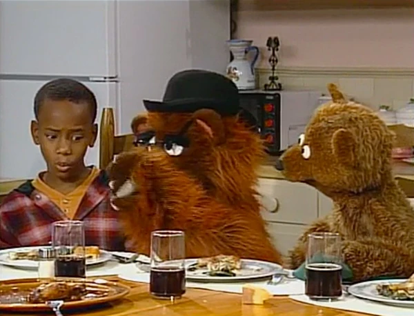 SCENE 5 | As the families continue their meal, Miles asks Papa Bear to pass the pepper. Papa grabs the shaker, ducks under the table, and crawls his way over to Miles to sprinkle it on his food before returning to his seat. When Baby Bear wants some, Gordon says he doesnβt have to crawl under the table... so Mama Bear does it instead. Soon after, all the Bears are under the table until Gordon tells them to get up. They show them how easier it is to pass the item from one person (or bear) to another. The Bears find this fascinating, but when Miles asks for ketchup, Papa Bear grabs the bottle and starts crawling under the table again (not realizing the rule applies to not just pepper). |