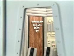 SCENE 2 | The mission control announcer (Jerry Nelson) comes over the loudspeaker to announce that the team is getting ready to board the ship. Oscar is adamant about Slimey not leaving until he's sure that his worm has everything he's going to need in space. He gets to see inside the ship and accounts for chairs with seatbelts, beds to sleep in, freeze-dried pizza, a library of books, and even a bowling alley. Oscar notes that they don't have any water wings packed, but he's told that there's no water on the moon and no pool in the ship. Appalled, Oscar decides that Slimey's not going if he can't swim. |