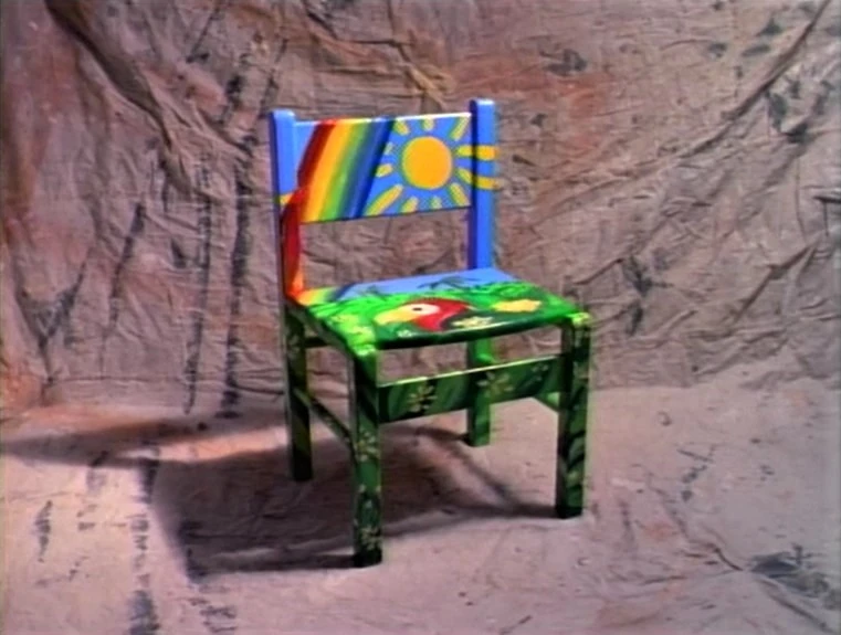 Animation | Before / after: Designs of a rainforest are painted on a chair. (First: Episode 3129) |