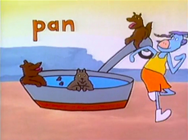 Cartoon | A Zerkel named Dan demonstrates -an words. Artist: Sally Cruikshank (First: Episode 3515) |