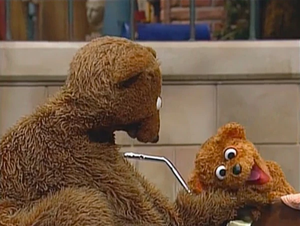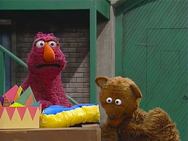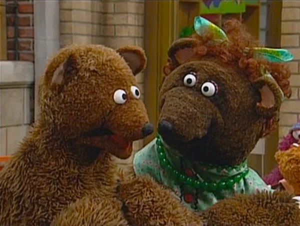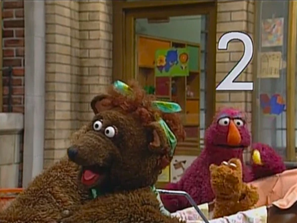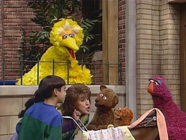 SCENE 4 | Around the corner, Baby Bear thinks he's safe from Mama Bear and the "attention-stealer" until Mama Bear wheels him to her son. She says she has grocery shopping to do and leaves Oliver with him. Baby Bear thinks that now there'll be no more "baby talk" since his Mama is gone, but Ruthie, Big Bird, and two kids spot the baby and begin babbling with him. He gets even more upset when Telly falls prey to Oliver's cuteness. While Telly "coochie-coos" with the baby some more, Baby Bear tries not losing his cool. |