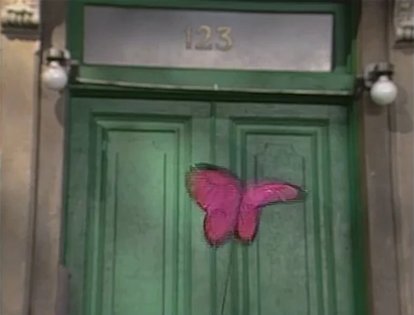 SCENE 3 | The butterfly leads Big Bird and the kids to yet another section of the park. Miles still doesn't believe that the butterfly is really playing with them, but Gabi is starting to agree with Lexine and Big Bird - after all, if an 8-foot-two-inch bird can play "Follow the Leader," why not a butterfly? Big Bird starts naming the people he'll tell about his experience when he gets back to Sesame Street, but remembers that Linda is deaf. He realizes he doesn't know how to say "butterfly" in sign language, and Miles and Gabi doubt that the butterfly knows either. Just then, the butterfly flies up to the screen and shows a film sequence of a girl saying the word "butterfly" in sign language. (First: Episode 3341) |