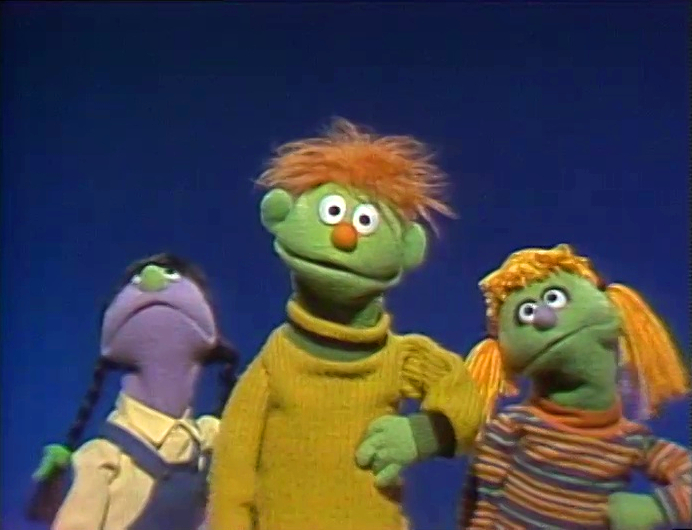 SCENE 3 | Big Bird is still trying to guess Snuffy's Aunt Samantha's last name. Gabi meets with them and considers the question, scratching her head before guessing that it's likely "Snuffleupagus," which is right! Big Bird and Snuffy are amazed; now Big Bird thinks that scratching his head will work better than rubbing his beak. Snuffy thinks both will work, and asks Big Bird another question: what's his Uncle Sidney's last name? Big Bird rubs his beak and scratches his head, and gets the (obvious) answer right this time. He decides that he and Snuffy should see what others do while they figure out the answers to questions. |