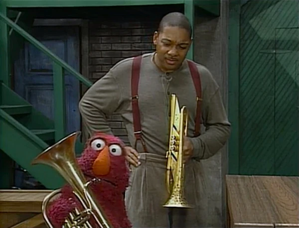 COMING SOON | Coming soon on Sesame Street: Wynton Marsalis tries to help Telly play an A note on his tuba, with mixed results. (Wynton: "I think that was a W.") |