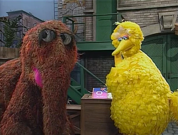 SCENE 1 | Big Bird and Snuffy look at a large alphabet book which is on the letter O page, which has a drawing of an owl on it. Snuffy wonders why he's never seen an owl before, and they ask Gordon why they don't see owls when they walk through the woods. Gordon explains that owls come out at night. When Gordon leaves, Big Bird points out that when he and Snuffy asked him the question, Gordon rubbed his chin before he responded. They come to the conclusion that maybe the chin-rubbing helped him answer, and decide to put it to the test... but first Snuffy needs a question to ask Big Bird. |