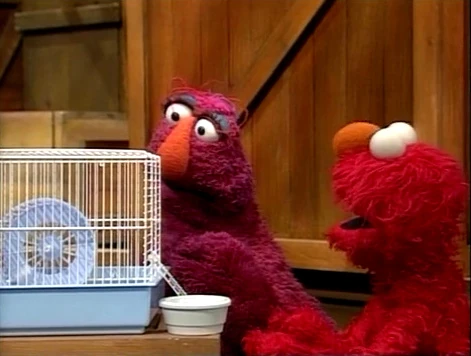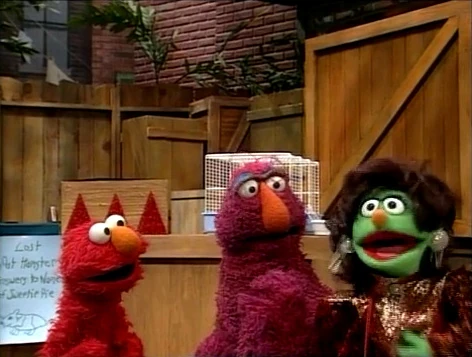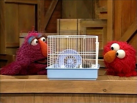 SCENE 4 | Elmo tries to explain what happened to Telly and realizes that he must have left the cage open by accident. Telly feels angry with Elmo (for his losing Sweetie Pie), with himself (for abandoning his hamster in the first place), and with Sweetie Pie (for abandoning him). Elmo promises to spend the rest of his life searching for him when Lexine happens by. They explain the situation and she offers to help look for him. |