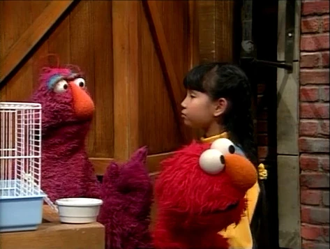 SCENE 2 | Telly claims that Sweetie Pie loves "The Alphabet Song." He launches into it, but Elmo points out that Sweetie Pie isn't singing along; Telly surmises that he just hasn't learned it fully, but is definitely singing along in his head. Telly also says that Sweetie Pie goes crazy over his triangle collection, which he's left at home. He can't bring the cage along, so Elmo volunteers to watch him. Telly is hesitant, but allows this and leaves while Elmo sings "The Alphabet Song" again to Sweetie Pie. |