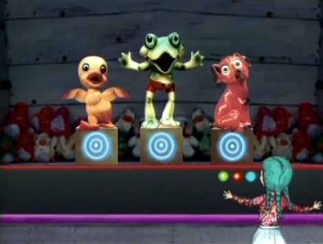 Animation | "Step right up and find my voice!" A girl plays a carnival game in which she pushes buttons to identify which sound each animal makes. (First: Episode 3736) |