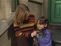 SCENE 7 | On the stoop of 123 Sesame Street, Gina talks with Emma about her pet kitten Markel. |