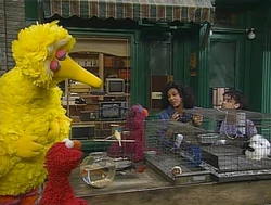 SCENE 2 | Big Bird and Gabi set up Flo with her own cage at the shop and head off - Gabi to school and Big Bird to a counting appointment with Zoe. Telly and Elmo stop by to see Flo and Maria explains why she's watching her. The thought of Flo all alone in an apartment gives Telly and Elmo an idea, and they run off. As Telly heads home, he passes by 123 Sesame Street and Ernie and Bert's apartment... |