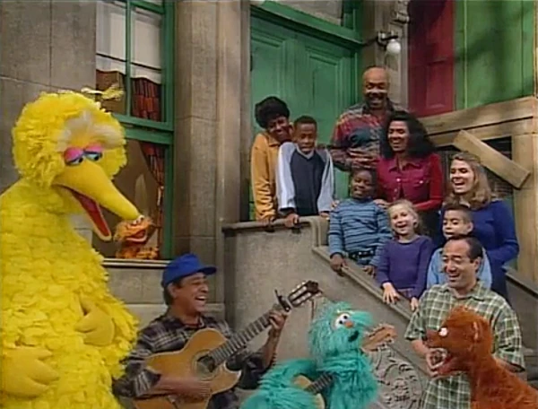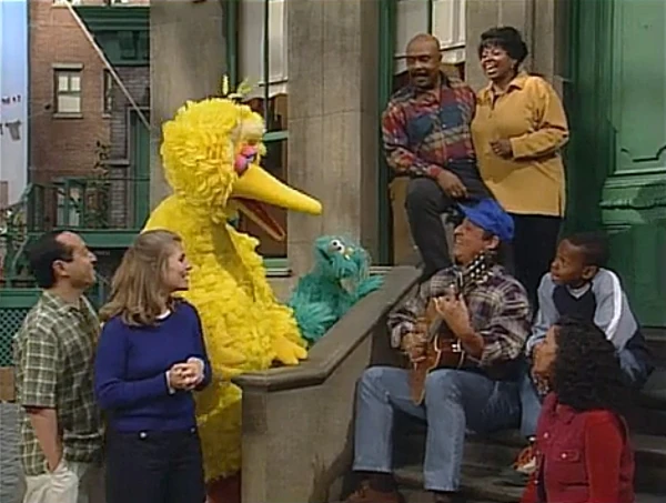 SCENE 1 | Big Bird greets the viewer before greeting Luis, who has his guitar with him. Little by little, everyone on Sesame Street gathers around the stoop and joins him as he plays and sings "Sing." Once everyone leaves, Rosita tells Luis that she is enchanted by his guitar playing and wants to learn how to play. Luis says he'll loan her one of his spare guitars, and she becomes excited and pictures herself playing beautiful music. |