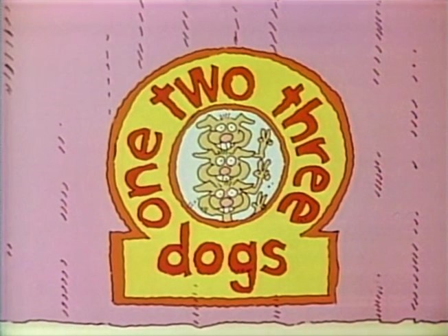 Cartoon | The One Two Three Dogs do circus stunts. (First: Episode 1480) Zoe boings across the screen at the end of the cartoon, exclaiming "Three!" |