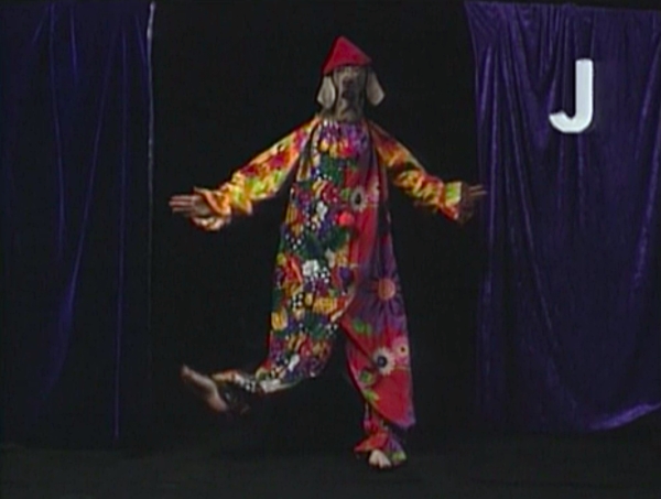 Film | William Wegman's dogs make a J and dress as a jester. (First: Episode 3527) |